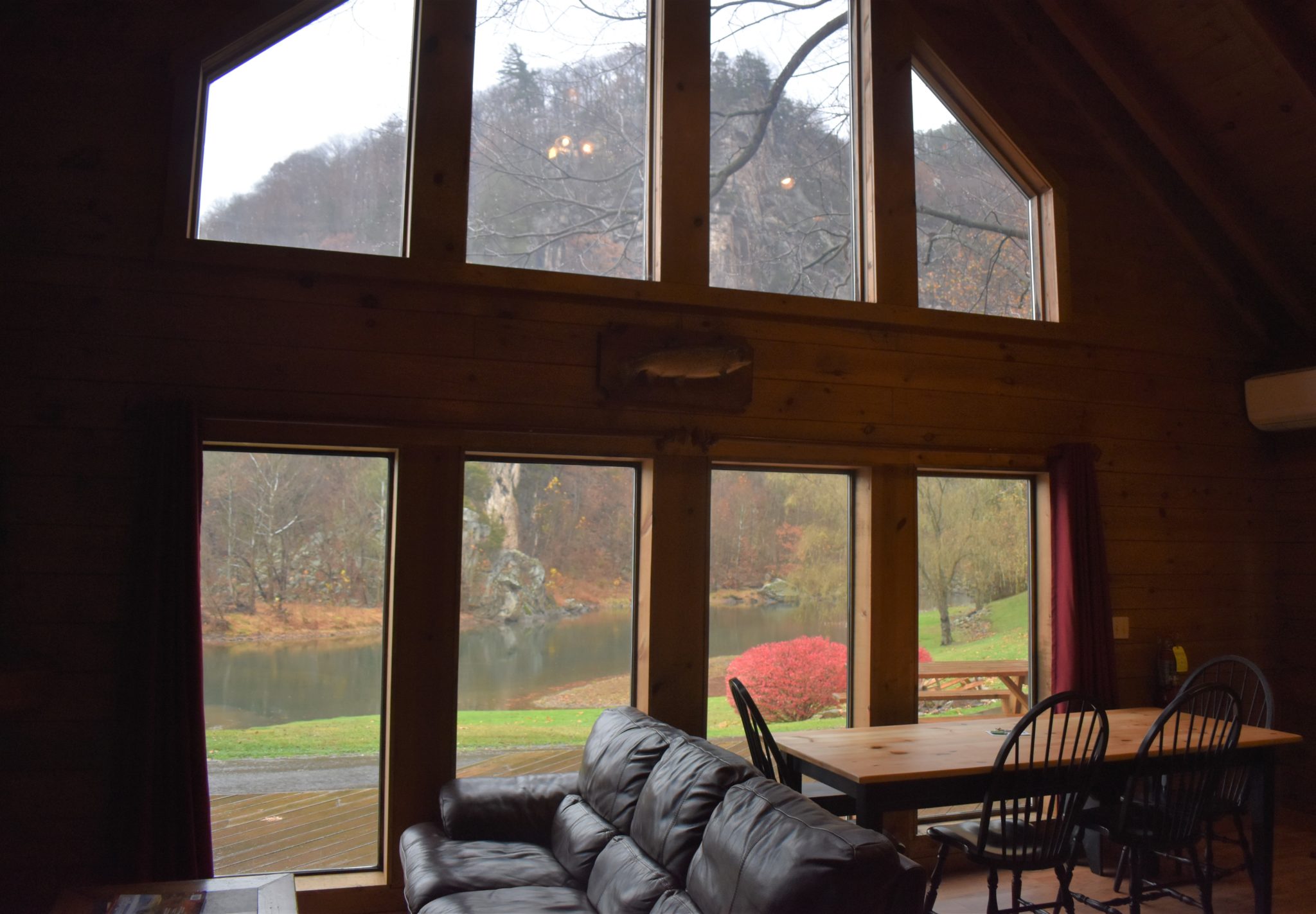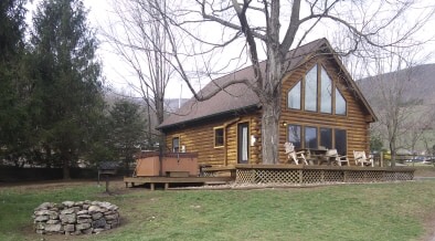 Located in Hopeville Canyon the view from this Cabin’s loft, family room and deck is a magnificent 300′ rock cliff rising from the North Fork River, including views of the Allegheny Mountains.